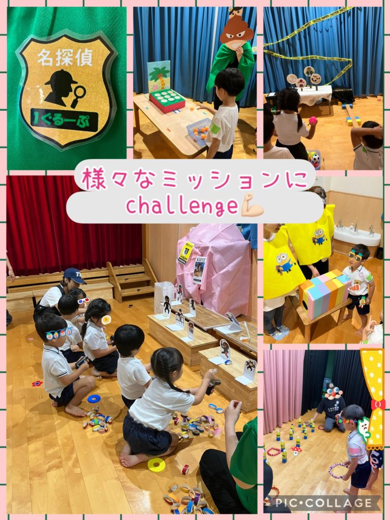 子どもたちは、探偵団になり、それぞれのゲームにチャレンジし、秘密のカードをGET!!!どうやら何か平仮名が書いてあるようです・・・。そして、5つのカードを組み合わせて